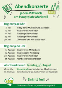 Sommerkonzert 16.7.2025 Trotz durchwachsenen Wetters fand am Mittwoch, dem 16. Juli 2025, unser diesjähriges Sommerkonzert am Mariazeller Weiterlesen » Juli 24, 2025