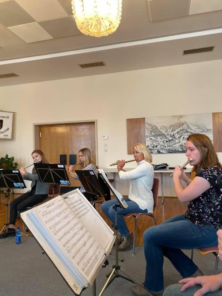 Am 2. November durften wir mit externen Referent*innen für die bevorstehende Konzertwertung in Langenwang proben. Aufgeteilt in die einzelnen Register wurden die Wertungsstücke geprobt und ausgestemmt und auch so einige Tipps und Tricks verraten. Wir sagen DANKE an die Referent*innen für die lehrreichen Stunden und ein großes Dankschön auch an unseren Kapellmeister Andreas Schweiger für die Organisation.