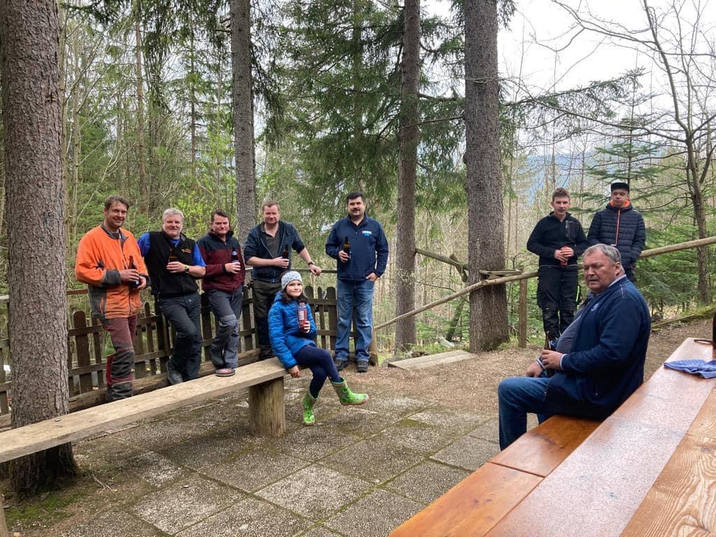 Unsere Musiker-Männer haben sich heute schon früh auf den Weg gemacht und den Maibaum mit Hilfe von Franz Eder aus dem Wald geholt. Zuvor gab es im Hause der Obfrau Karin ein leckeres Frühstück. Der Baum wird jetzt noch mit Kranz, Girlanden und Bändern geschmückt und bis zum Einzug um 14.30 Uhr bewacht. Wir freuen uns schon auf euren Besuch.