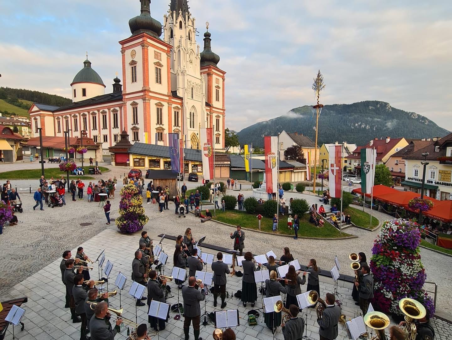 Impressionen vom heutigen Mittwochskonzert am Hauptplatz Mariazell. Wir verabschieden uns nun in eine einmonatige Sommerpause und freuen uns, viele bekannte Gesichter beim Abschluss der Sommerkonzerte mit Sternmarsch am 3. September begrüßen zu dürfen. Die Mittwochskonzerte gehen natürlich mit den heimischen Kapellen weiter. Im August Beginn jeden Mittwoch um 19.00 Uhr.