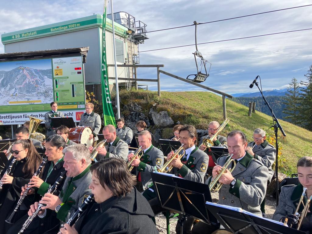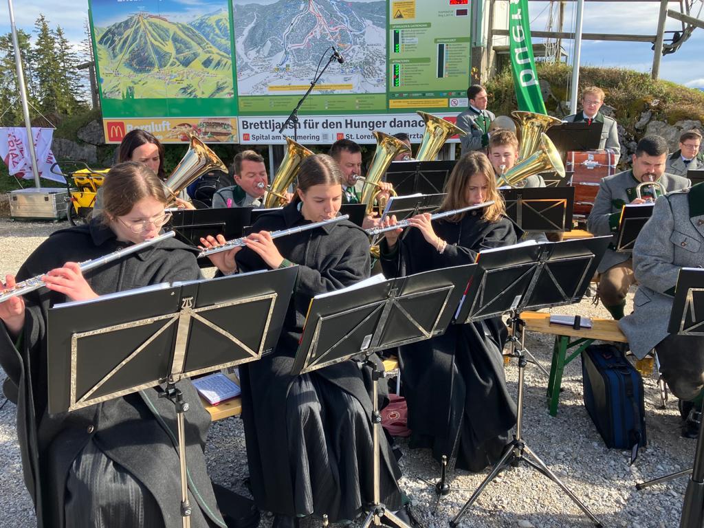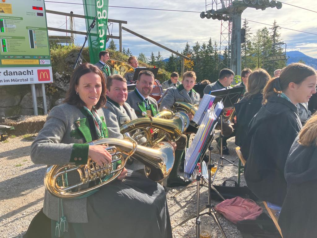 Am Nationalfeiertag, den 26.10.2023 durften wir den Frühschoppen beim Bergfest von Radio Grün Weiß auf der Mariazeller Bürgeralpe musikalisch mitgestalten. Beim Bergfest wurden die 11 Gewinner*innen des Radio Grün Weiß Wandersommers ausgelost. Die Bagger Baum, die Zirbitzkogelbuam und die Hafendorfer sorgten nach unserem Frühschoppen für beste Stimmung – vor allem bei „Böll-Böll-Kernöl“ wurde trotz der geringen Temperaturen ordentlich eingeheizt.