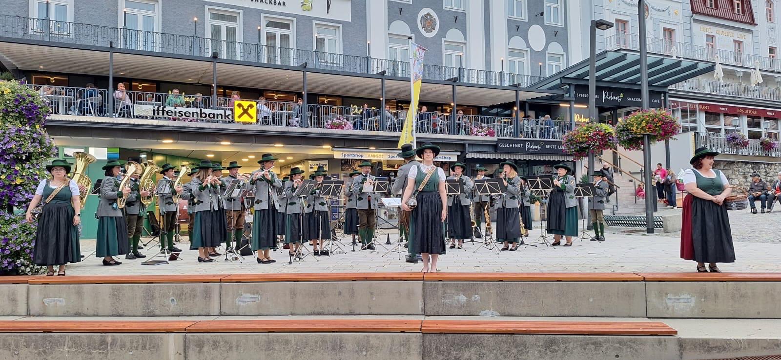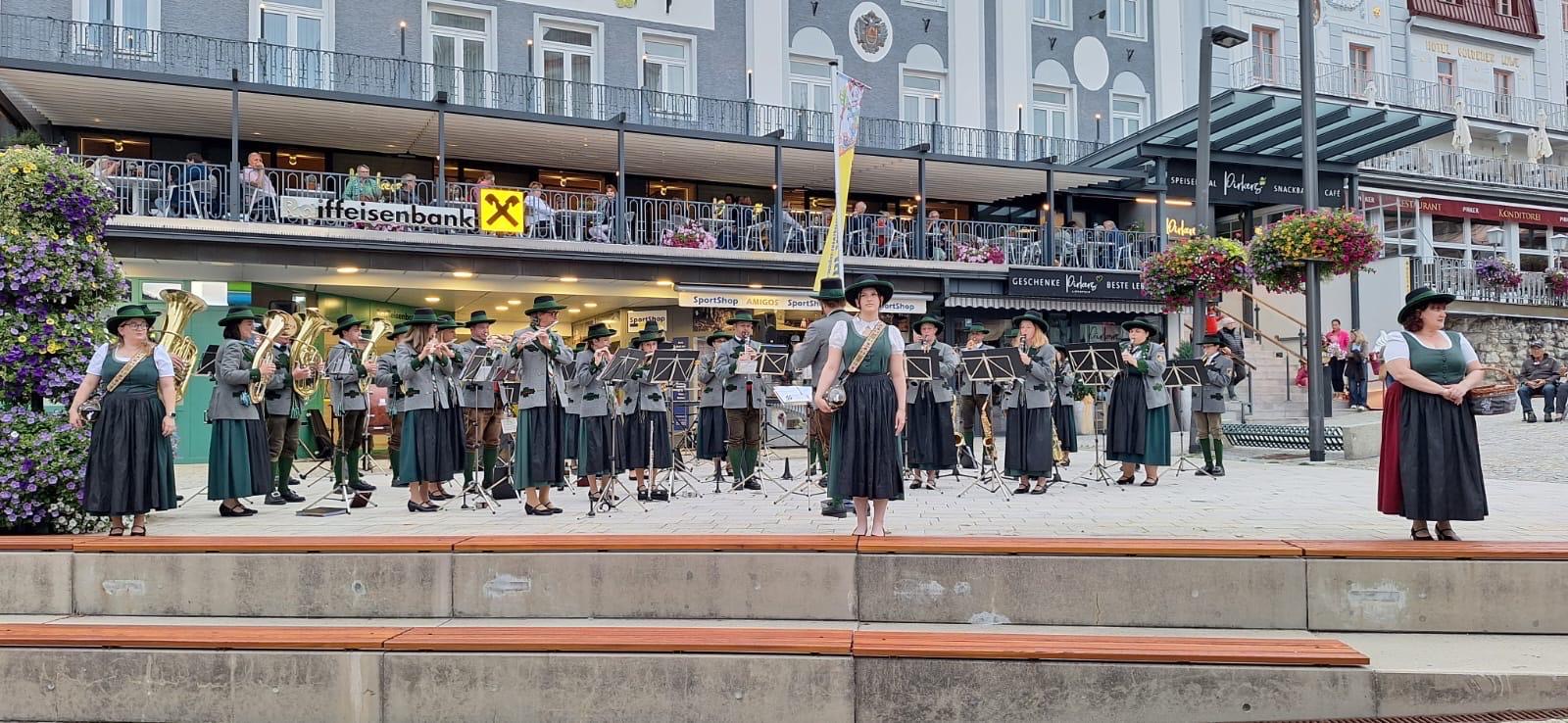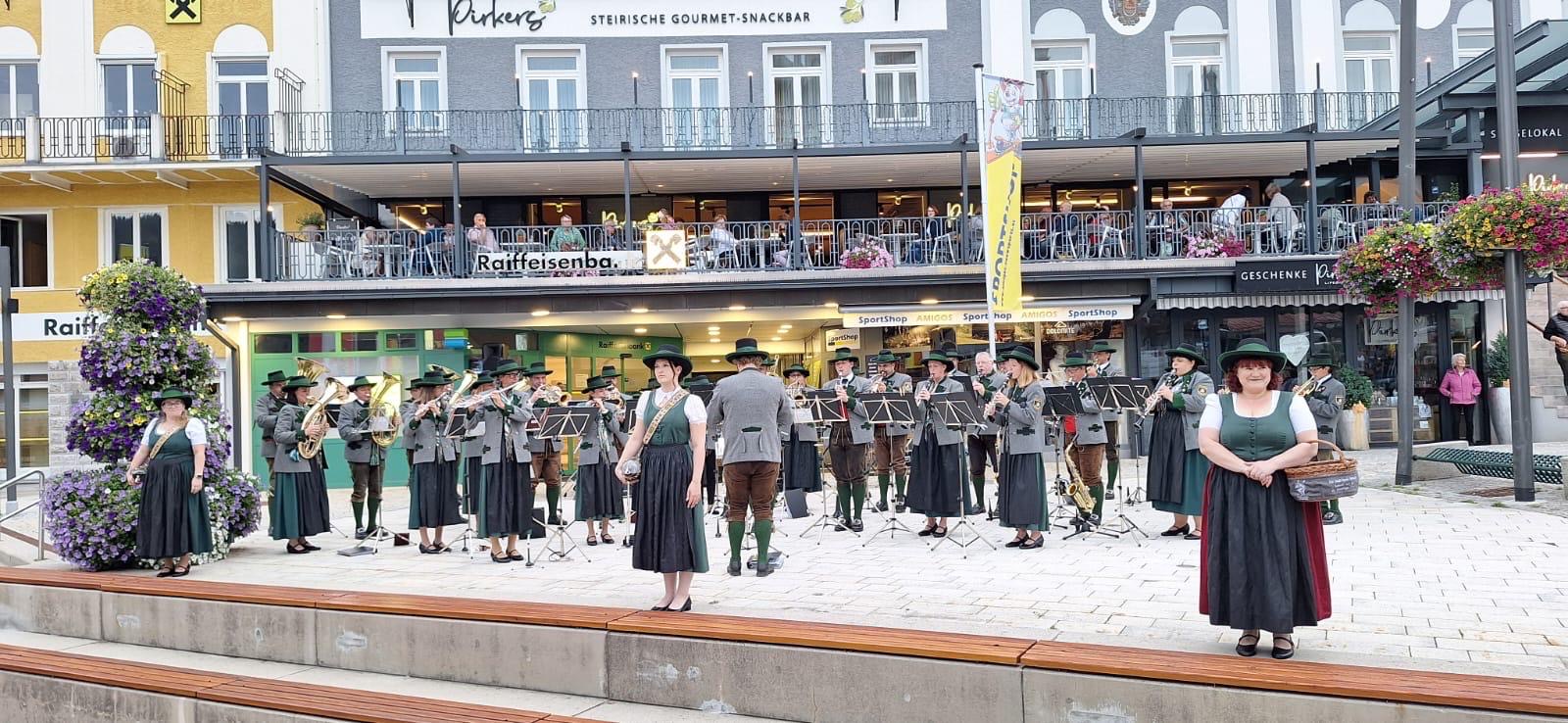 Trotz durchwachsenen Wetters fand am Mittwoch, dem 16. Juli 2025, unser diesjähriges Sommerkonzert am Mariazeller Hauptplatz statt. Auch wenn dunkle Wolken über dem Hauptplatz hingen, ließen sich einige treue und wetterfeste Zuhörerinnen und Zuhörer nicht davon abhalten, den musikalischen Klängen der Stadtkapelle Mariazell zu lauschen.