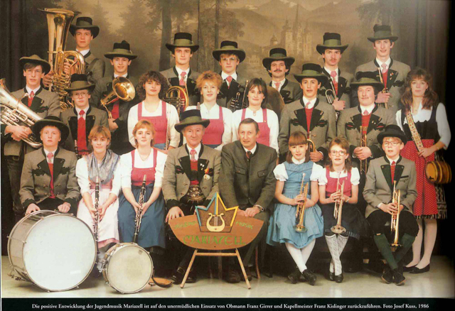 Nachdem sich die Trachtenkapelle in Mariazell im Jahr 1978 aufgelöst hat, gründete Franz Kieslinger mit 7 engagierten jungen Musikerinnen und Musikern eine Musikgruppe. Die Anzahl der Mitglieder stieg rasch, und so wurde die Musikgruppe schließlich als Verein unter dem Namen „Jugendmusik Mariazell“ registriert. Als 1992 der Name „Jugendmusik Mariazell“, aufgrund des steigenden Durchschnittsalters, nicht mehr passend war, wurde die Jugendmusik kurzer Hand in „Stadtkapelle Mariazell“ umbenannt.